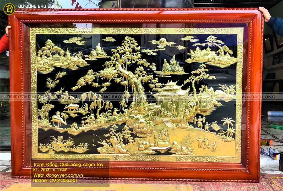 Bức tranh đồng quê mạ vàng 24k khung gõ đỏ đục tân cổ điển 1m76x89cm