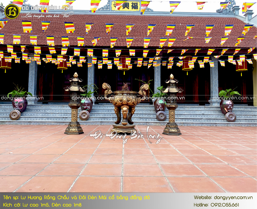 Lư hương và đôi Đèn thờ abwfng đồng cho chùa Phúc Hưng, Hưng Yên
