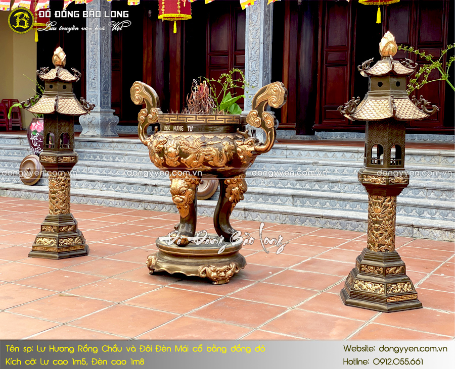 - Kích thước: Lư hương cao 1m5; đôi Đèn cao 1m8