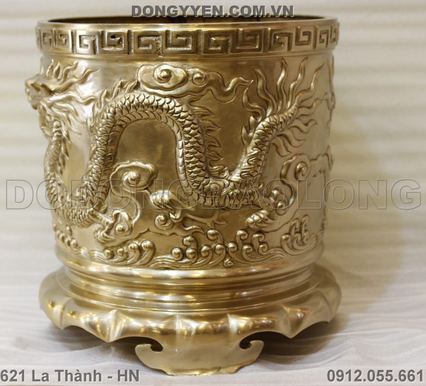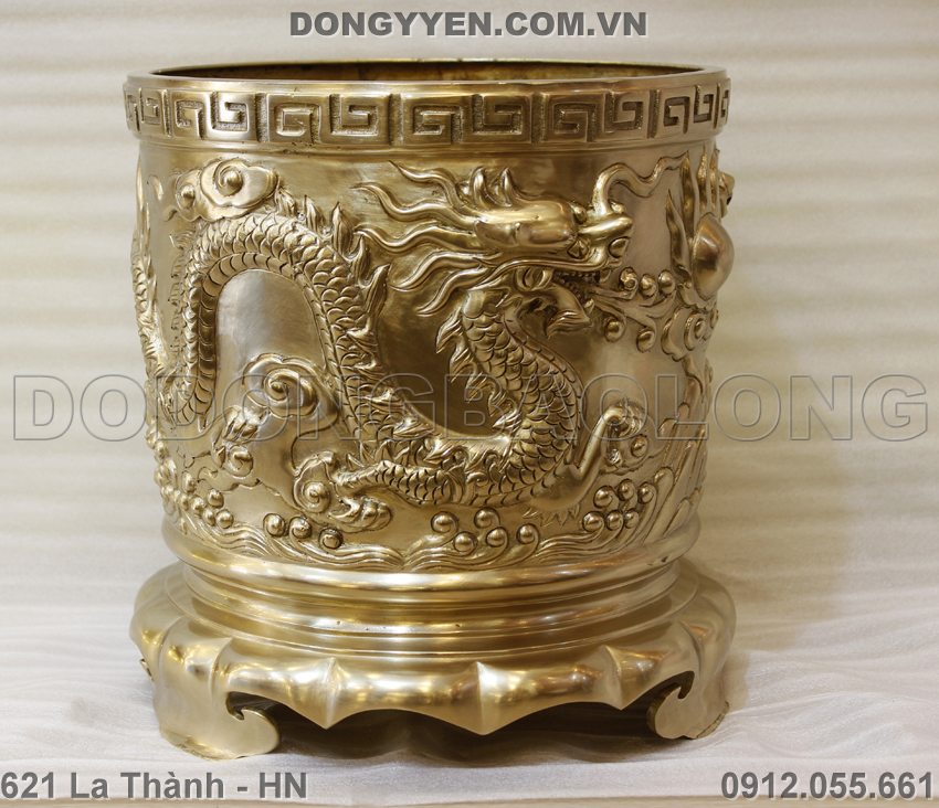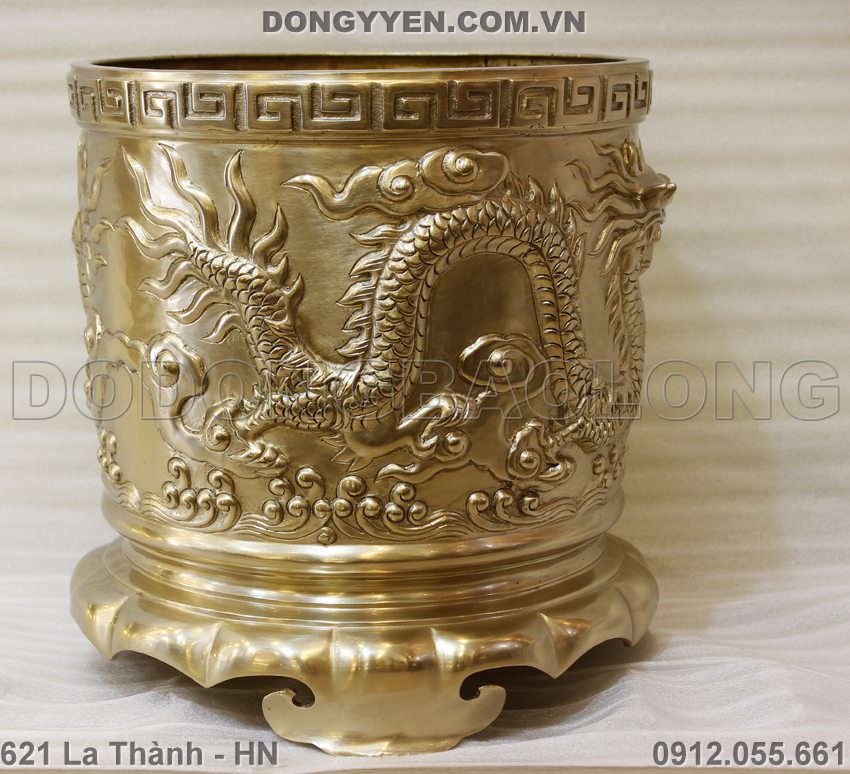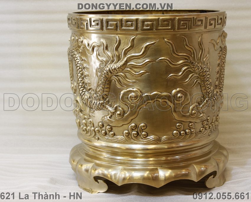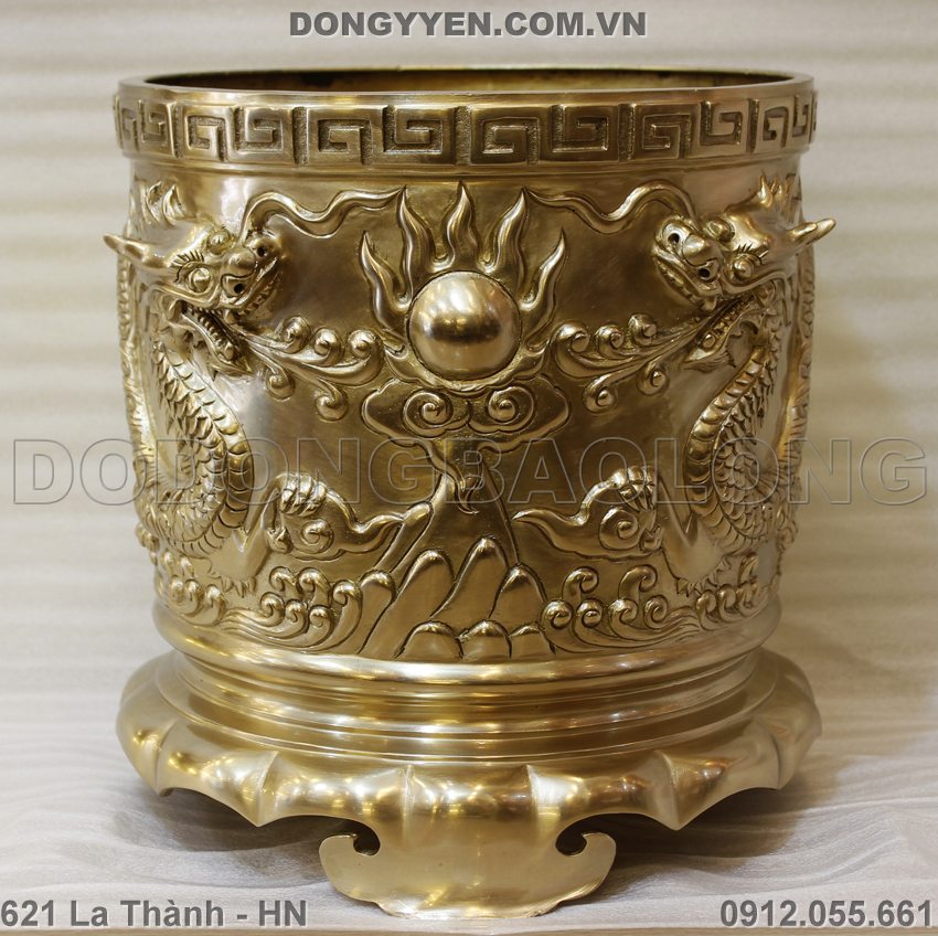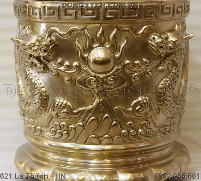 Bát Hương Đồng đường kính 28cm, đúc thủ công lưỡng long chầu nguyệt bằng chất liệu đồng thau, đúc nổi cực đẹp, dùng để cung tiến cho đền, chùa, miếu, nhà thờ họ.