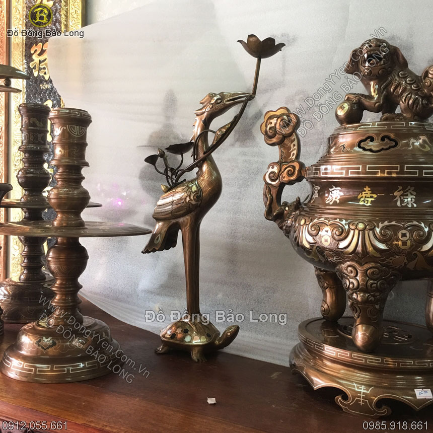 Bộ Đồ Thờ Đỉnh Đồng Hoa Sòi Khảm Dơi Tiền 55cm