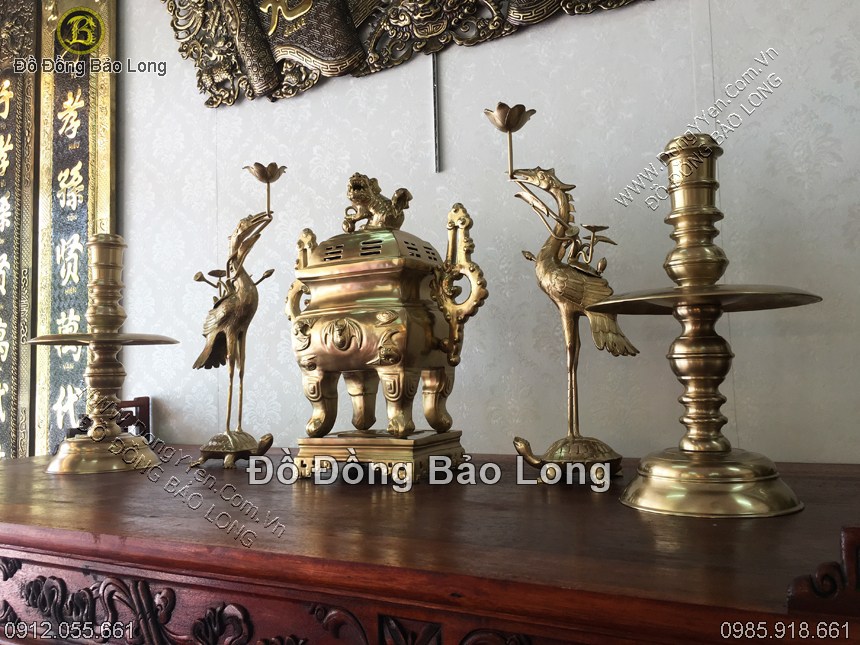 Tham Khảo Mẫu Bộ Đồ Thờ Bằng Đồng Mộc 50cm