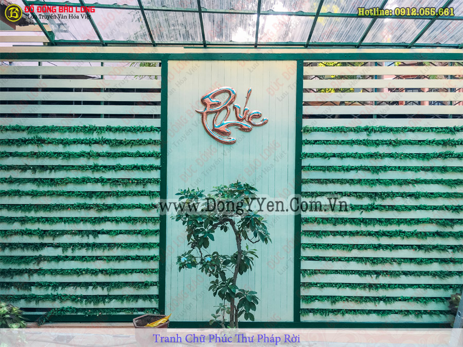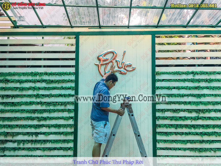 Chữ phúc thư pháp rời thúc chạm bằng đồng đỏ hoàn thiện và lắp đặt cho khách Hà Nội