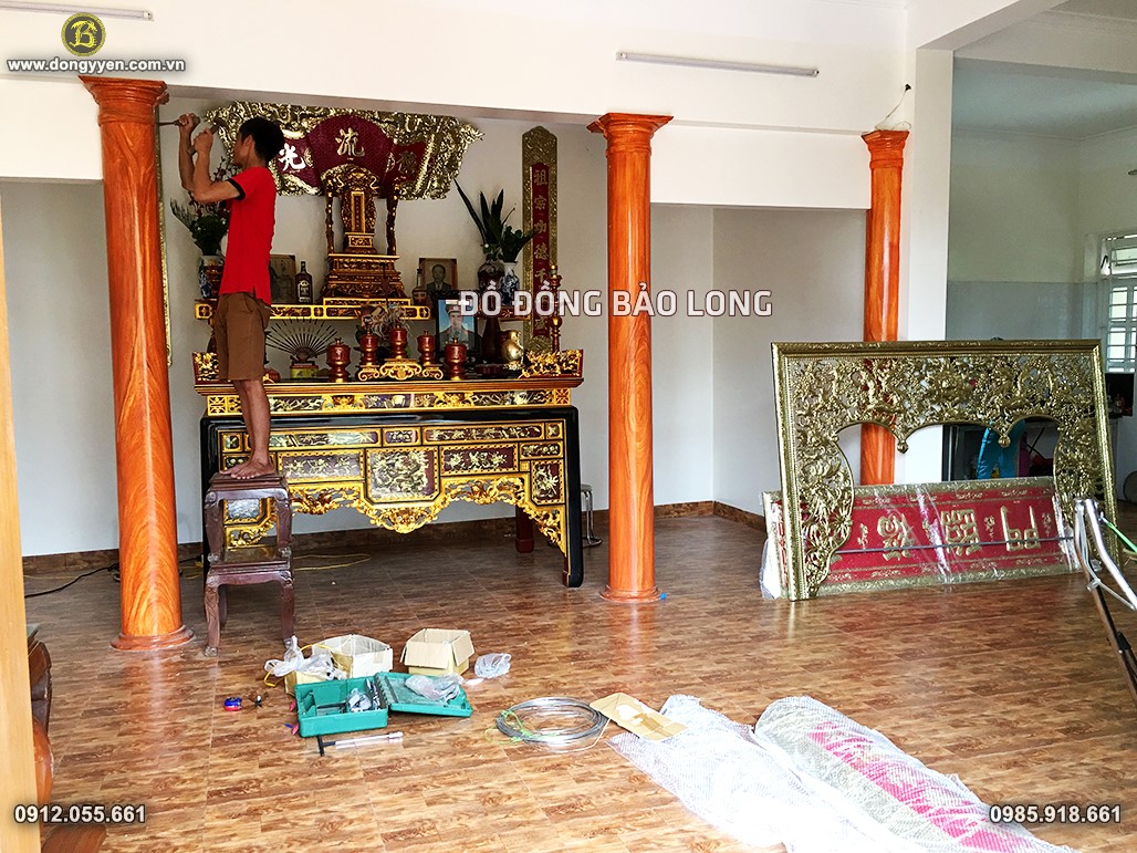Thi công của võng, đại tự, cuốn thư câu đối bằng đồng vàng hàng nghệ nhân chạm tay cho 1 nhà thờ ở Chương Mỹ hà nội