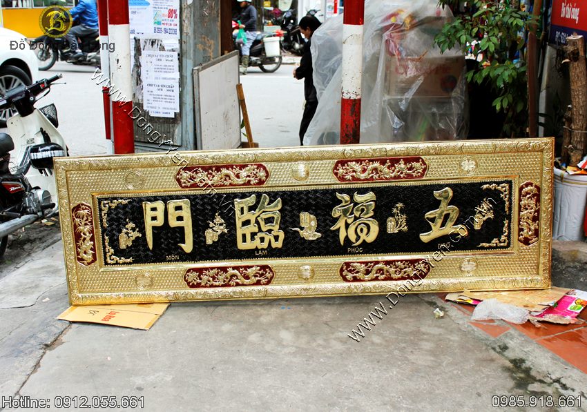 Đại Tự Ngũ Phúc Lâm Môn bằng đồng vàng dài 2m17 cao 69cm, đồng dày 1ly: