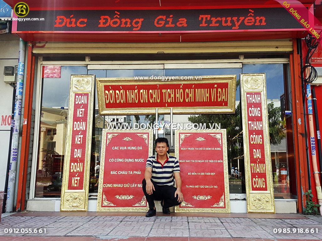 Đại Tự Câu Đối Khẩu Hiệu Bằng Đồng cho Phòng Thờ Bác Hồ