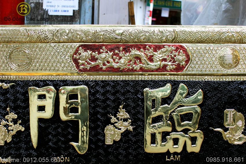 Đại Tự Ngũ Phúc Lâm Môn 2m17 thuộc hàng đặt chạm tay cao cấp, chạm tinh xảo bằng đồng vàng dày 1ly, khung xương inox 304, dài 2m17 cao 69cm với 4 chữ Nho Ngũ Phúc Lâm Môn độc đáo và ý nghĩa.