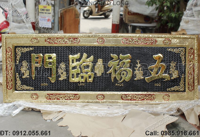 đại tự ngũ phúc lâm môn bằng đồng vàng 2m17