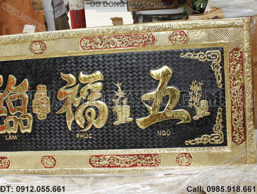 Đại Tự Ngũ Phúc Lâm Môm Bằng Đồng cao cấp mẫu cực đẹp chạm thủ công. Đồ đồng Bảo Long bán, nhận đặt làm đại tự bằng đồng vàng, đồng đỏ uy tín