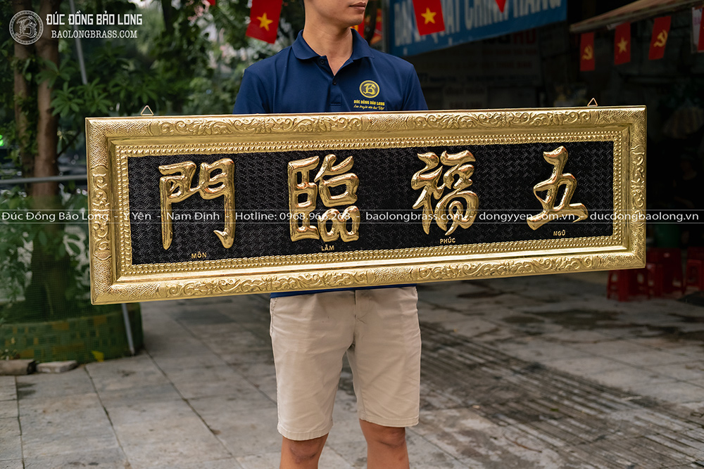 Đại Tự Ngũ Phúc Lâm Môn Chữ Nho Bằng Đồng Vàng 1m33
