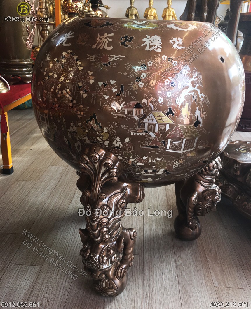 Tham Khảo thông tin sản phẩm Đỉnh Đồng Thất Lân Vờn Cầu 90cm để nẵm rõ hơn về các tích khảm trên đỉnh