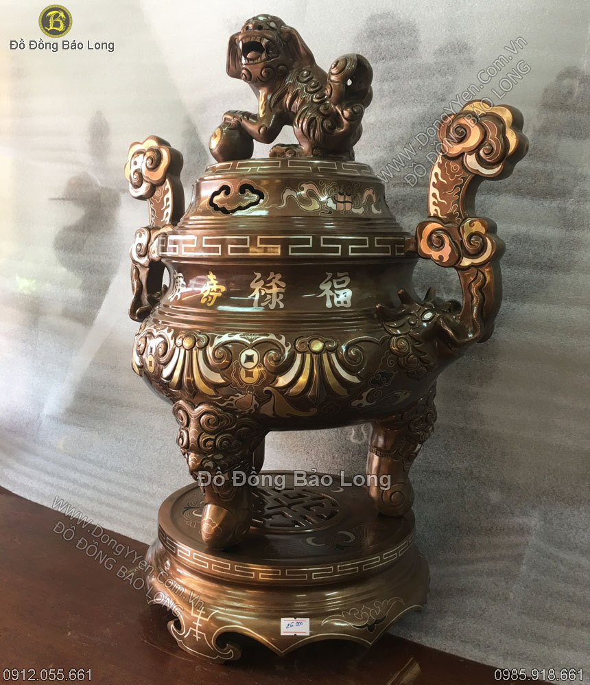Đỉnh Đồng Hoa Sòi Khảm Dơi Tiền 55cm