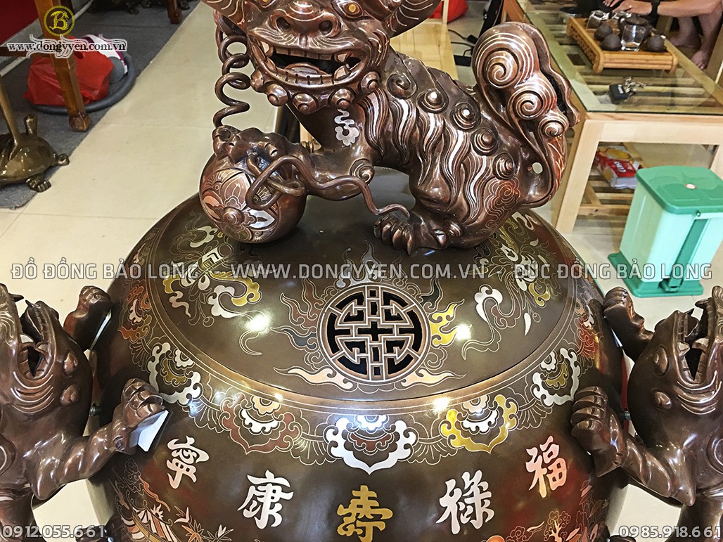 Đỉnh đồng thất lân cao 1m27 khảm 3 chữ vàng 9999