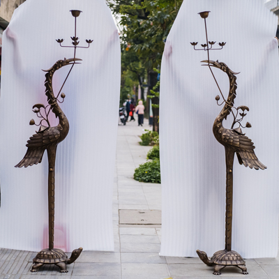 Đôi hạc bằng đồng vàng thau cao 1m76 có độ bền bao lâu?