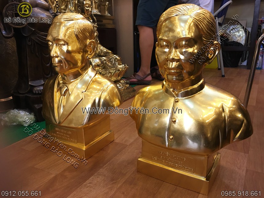Đúc tượng bán thân bằng đồng vàng, đồng đỏ, đúc thủ công dạng chân dung ông bà, cha mẹ, người đang sống hoặc người đã khuất, thếp vàng ròng 9999 tuyệt đẹp