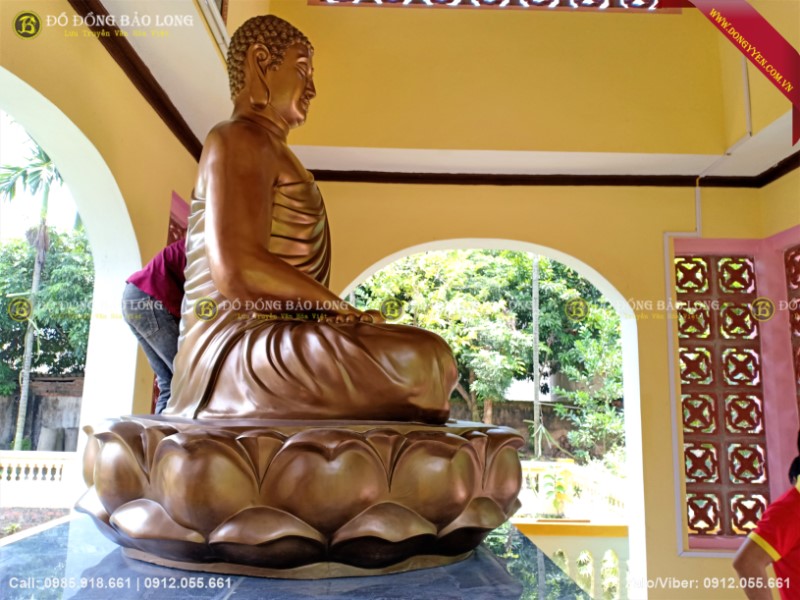 Cơ sở đúc đồng Bảo Long đúc hoàn thiện pho tượng Phật Thích Ca ngồi đài sen cao 1m8 theo yêu cầu, đã lắp đặt và an vị tại chùa nội Phật