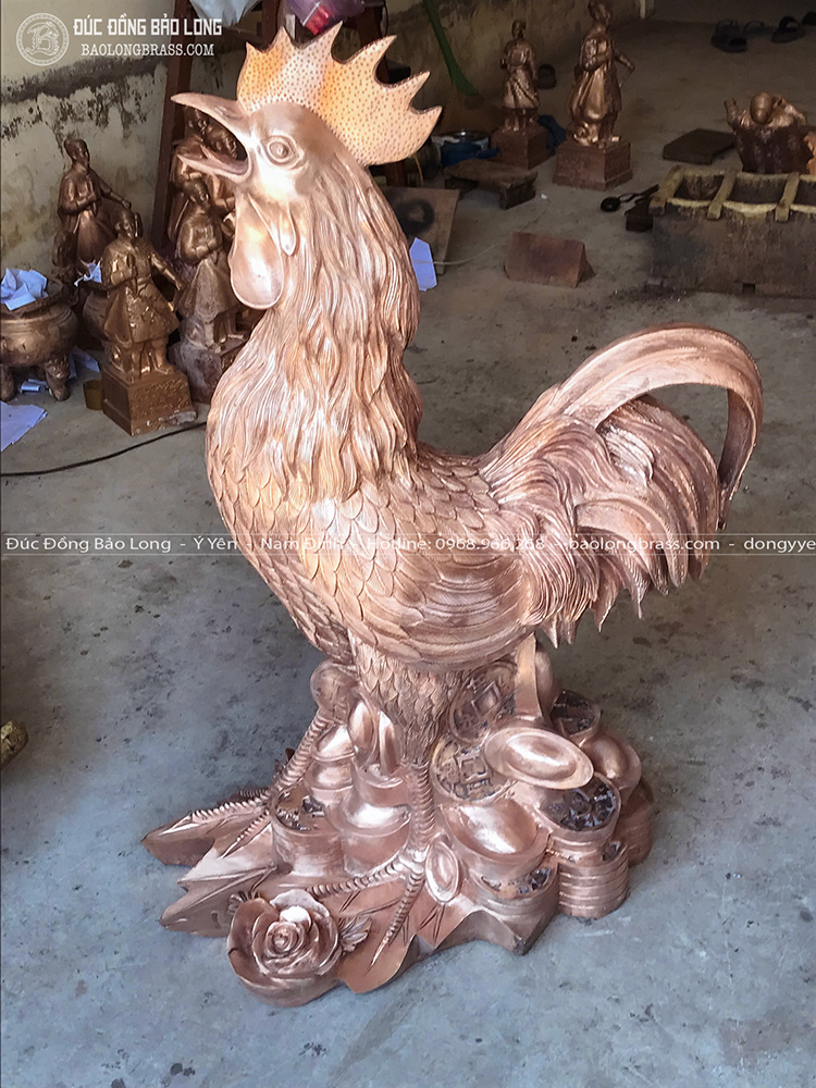 Pho tượng gà trống phong thủy có quá trình đúc thủ công, đòi hỏi người nghệ nhân phải có tay nghề cao, nhiều kinh nghiệm, tỉ mỉ mới có thể thực hiện được. Điểm độc đáo là tượng được mô phổng theo chuẩn nguyên mẫu thật, thần thái tốt. Quy trình đúc bao gồm các công đoạn sau: