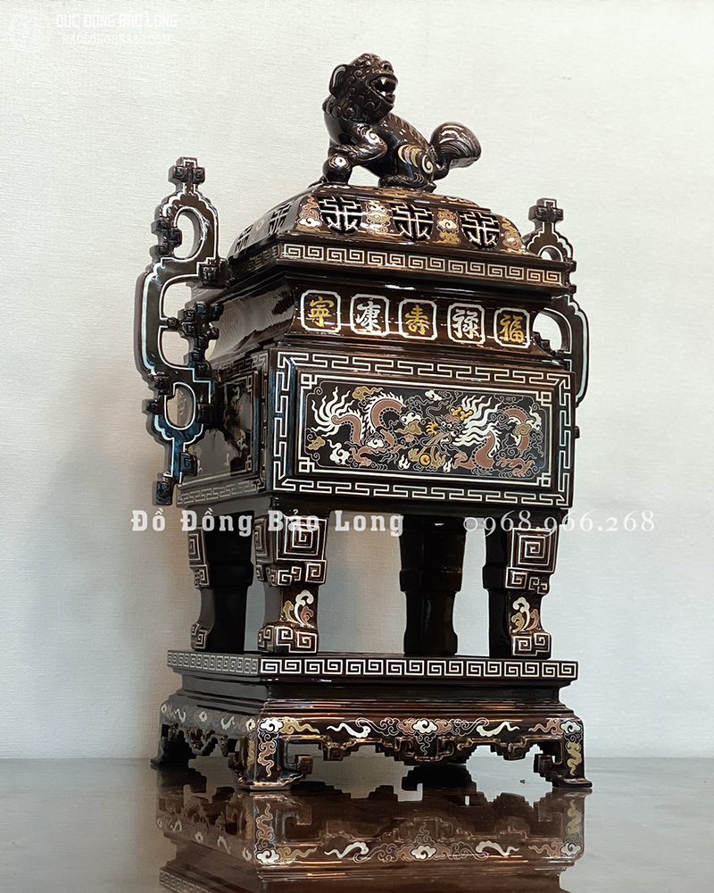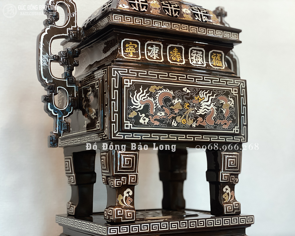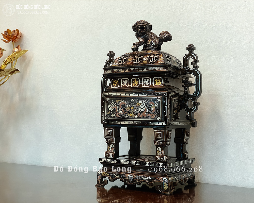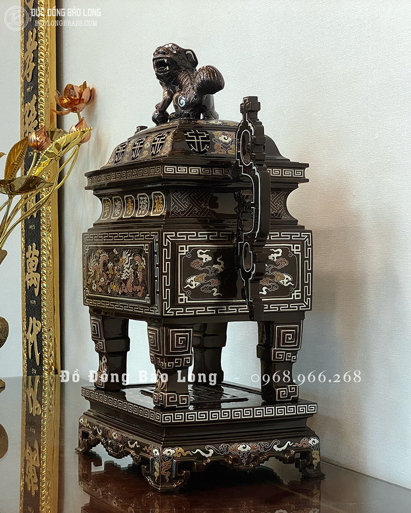Lư Đỉnh Thờ Vuông bằng đồng Khảm Ngũ Sắc 60cm đẹp giá rẻ