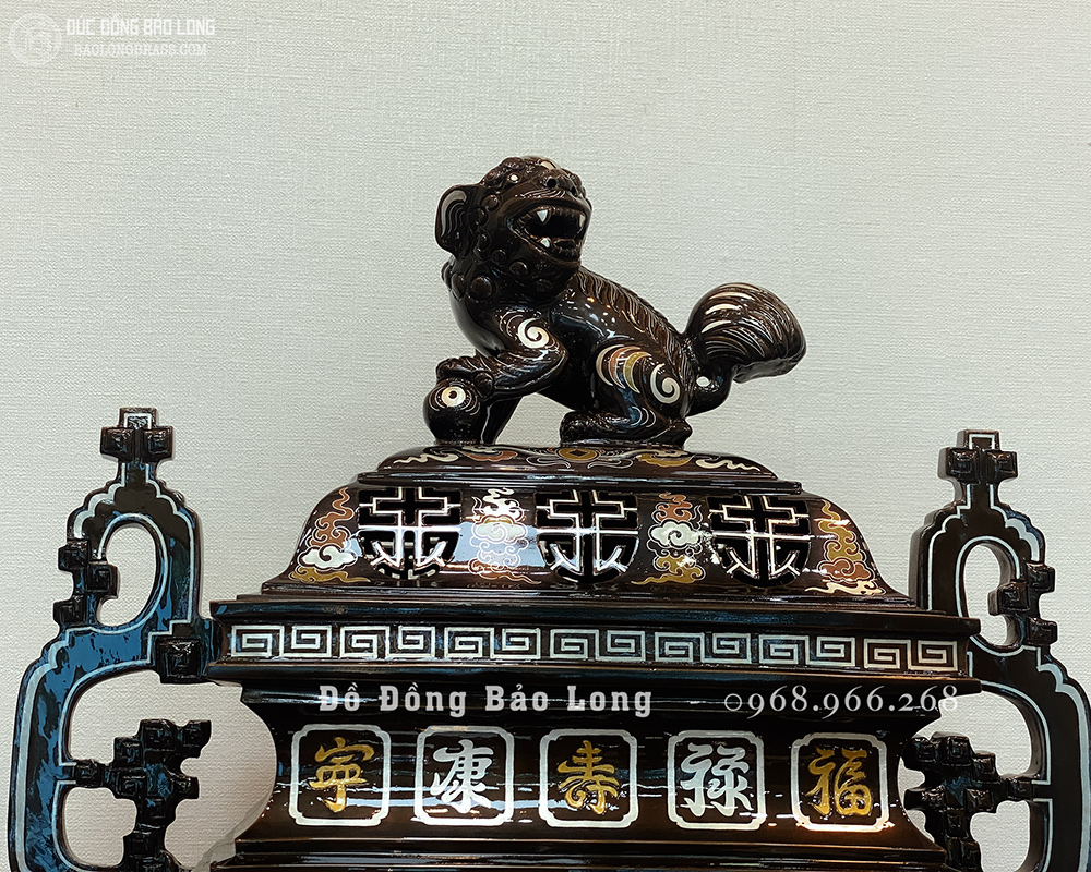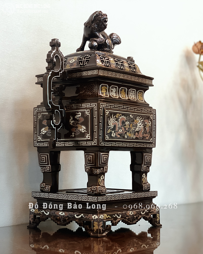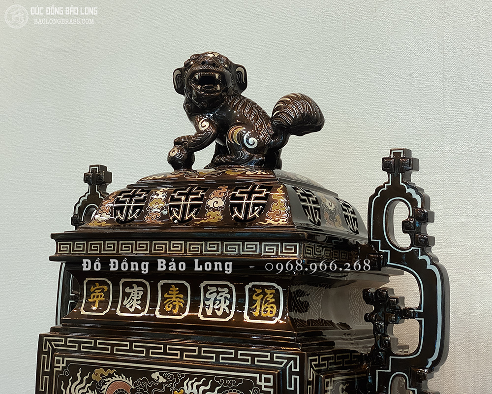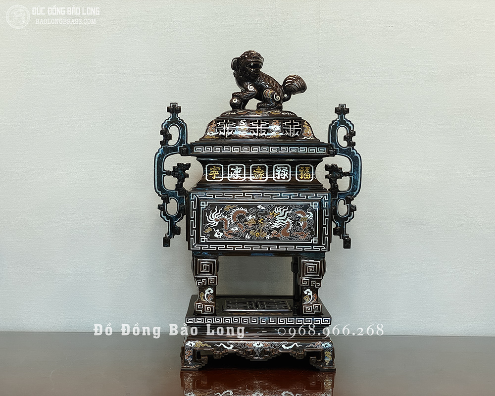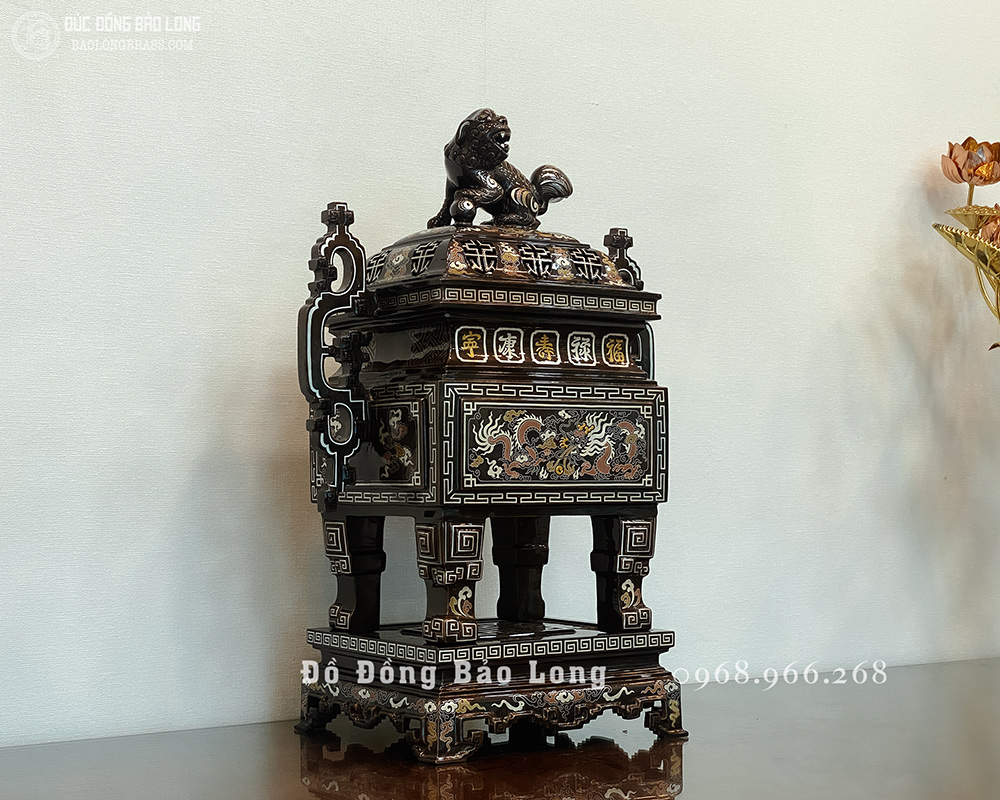Lư Đỉnh Thờ Vuông bằng đồng Khảm Ngũ Sắc 60cm đẹp giá rẻ