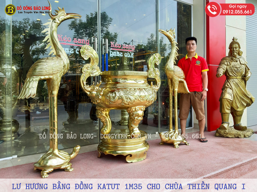 Lư hương đúc bằng đồng katut liên xô cao 1m35 nặng hơn 200kg, được đúc hoàn thiện và lắp đặt tại chùa Thiền Quang 1 ở Biên Hòa