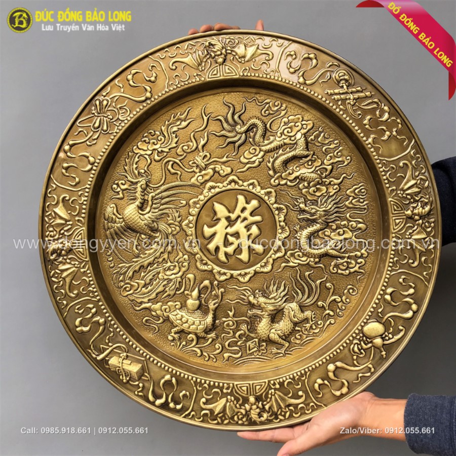 Bảo Long giới thiệu quý khách hàng rất nhiều mẫu Mâm Đồng dập nổi dùng để treo tường trang trí, kích thước phổ biến là đường kính 52cm, dập nổi rất nhiều hoa văn có sẵn, với những tích cảnh ý nghĩa phong thủy tốt. Bảo Long phân phối, bán buôn và bán lẻ các mẫu mâm này đi khắp cả nước. Nếu khách đại lý muốn lấy giá buôn vui lòng liên hệ theo số hotline hoặc lấy trực tiếp qua hệ thống cửa hàng của công ty Bảo Long