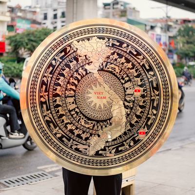 Mẫu mặt trống đồng ăn mòn hình bản đồ 34 tỉnh thành mới đk 1m mẫu trống đồng hàng phổ thông giá rẻ được nhiều khách hàng lựa chọn. Mặt trống đồng không chỉ là biểu tượng của nét đẹp văn hóa Việt Nam, mà còn thể hiện tình yêu đất nước Tổ quốc qua hình ảnh bản đồ Việt Nam cong cong hình chữ S. Mặt trống với hình ảnh bản đồ Việt Nam được chạm tay với 34 tỉnh thành mới được sáp nhập. Đây vừa là vật phẩm trang trí hoàn hảo và sang trọng, vừa là món quà biếu tặng vô cùng ý nghĩa mà bạn không thể bỏ qua.