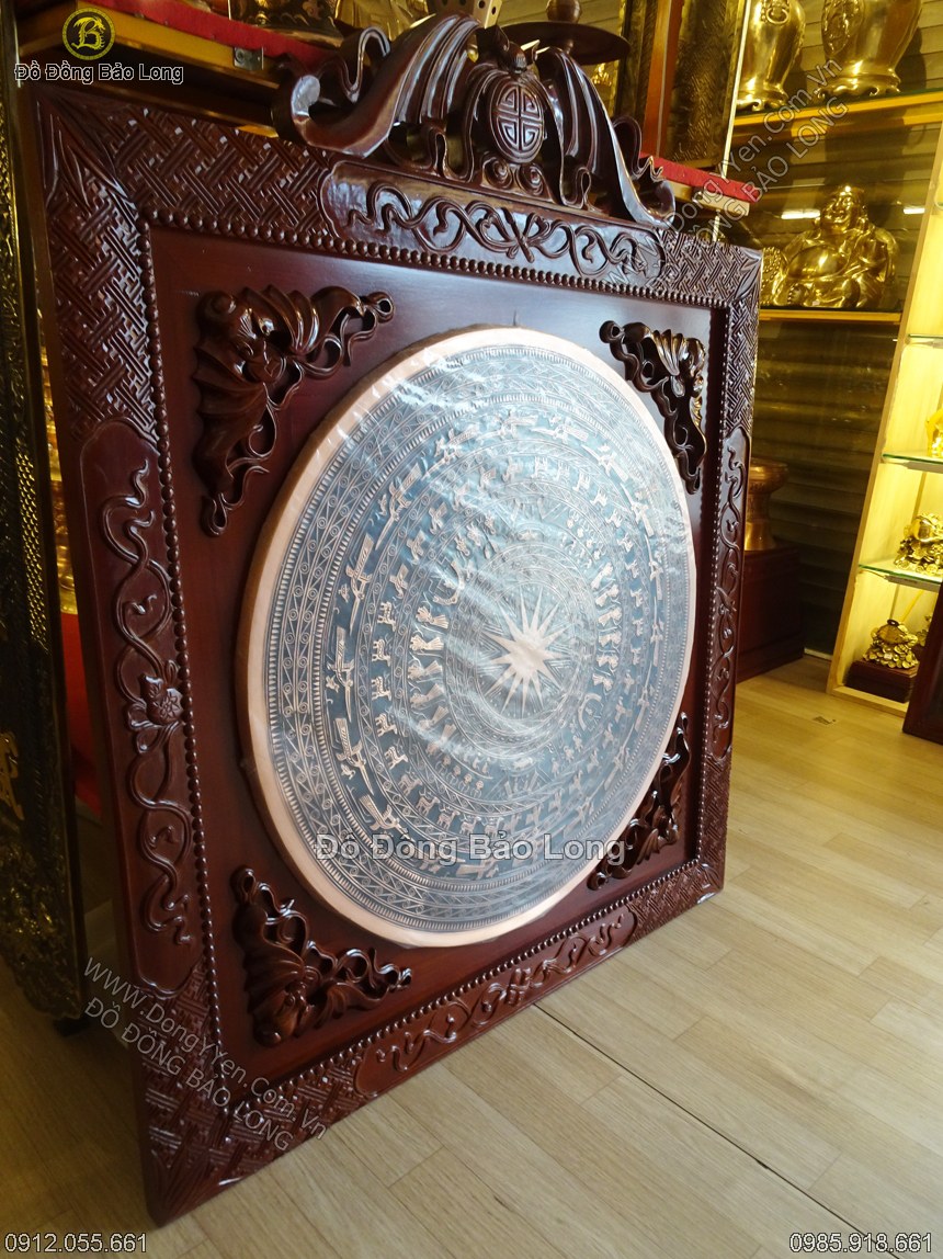 Mặt Trống Đồng Đúc Khung Gỗ Gụ Đục 1m08