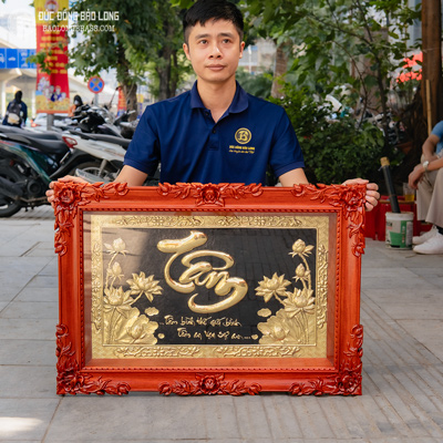 - Chất liệu cao cấp và bền bỉ: Sản phẩm được chế tác từ đồng nguyên tấm mang lại vẻ ngoài sang trọng, lộng lẫy và phủ lớp 2k chống oxy hóa, giữ được độ sáng bóng dài lâu. Khung gỗ hương chắc chắn không chỉ tôn lên vẻ đẹp của bức tranh mà còn đảm bảo độ bền cao, không bị cong vênh theo thời gian.