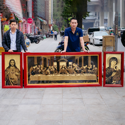 Bộ ba tranh Công giáo khắc tay gồm bức tranh Bữa Ăn Tối Cuối Cùng, Chúa Thánh Tâm và Đức Mẹ Hằng Cứu Giúp là những những hình ảnh biểu tượng nhất trong Công giáo. Bộ tranh phù hợp bày trí ở các không gian cộng đồng Công giáo, nhà thờ Công giáo hoặc không gian của các gia đình theo đạo Công giáo. Tại không gian gia đình, tranh có thể treo ở khu vực phòng thờ Chúa, phòng khách hoặc phòng làm việc, phòng sách,...