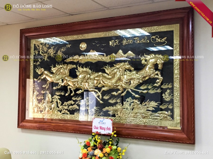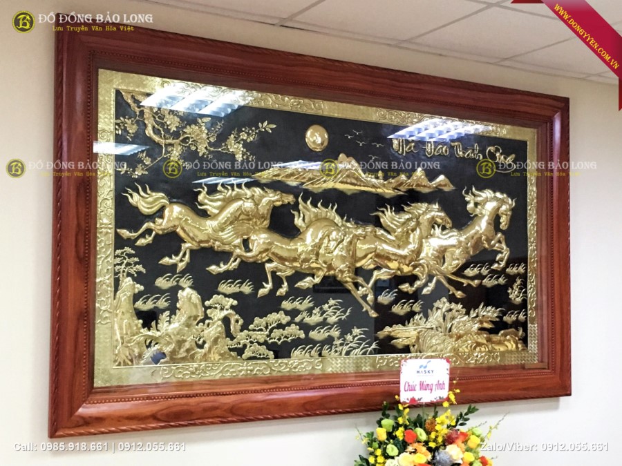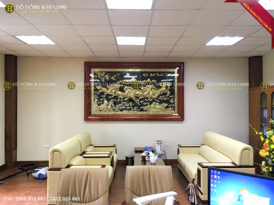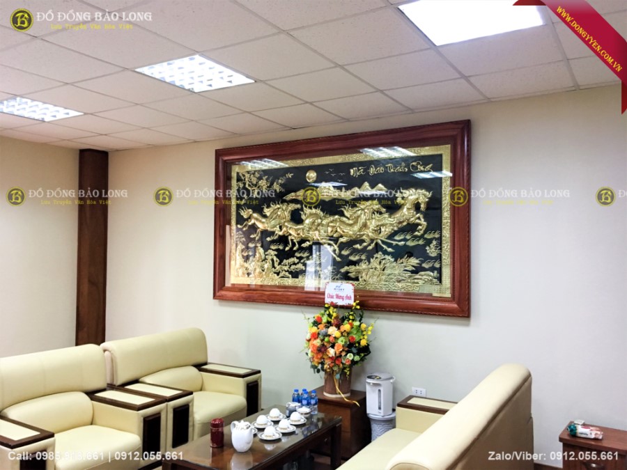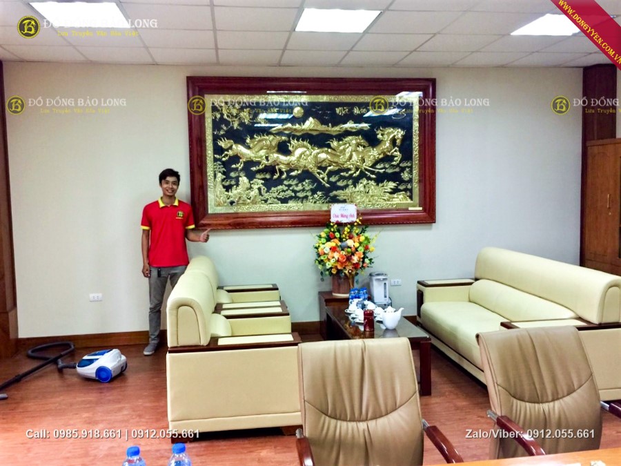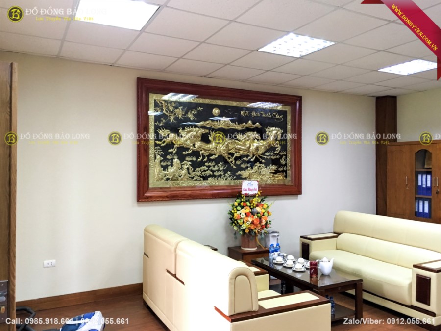 Bức tranh đồng bát mã dài 2m62 cao 1m55 hàng đặt theo yêu cầu của khách hàng đi biếu lắp tại ViettinBank Sóc Sơn