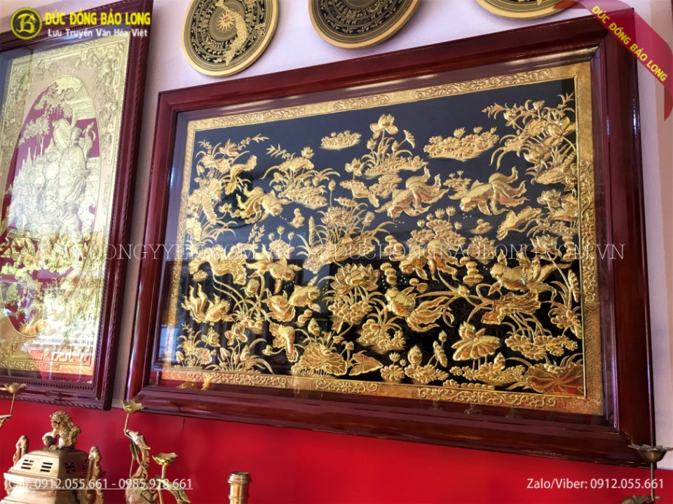 Bảo Long chế tác chuyên sâu nhiều bức tranh cửu Ngư Quần Hội đẹp lạ, thường xuyên thay đổi và thêm nhiều mẫu mới, áp dụng những Tiêu Chuần Chế Tác KHẮT KHE NHẤT vào quy trình sản xuất tranh, sử dụng chất liệu đồng tấm nhập khẩu dày dặn, khung tranh sử dụng nhiều loại gỗ tốt tuyển trọn, lòng tranh được chạm thúc thủ công 100%....Gần như những gì tốt, bền và đẹp đều được Bảo Long sử dụng để hoàn thiện sản phẩm. Với đội ngũ thợ nghệ nhân yêu, tiêu chí sản xuất cao cùng với định hướng nhắm tới những khách hàng khó tính, những khách hàng quân tâm nhiều đến chất lượng sản phẩm, chúng tôi đã hoàn thiện rất nhiều bức tranh cửu ngư quần hội đẹp và tâm cỡ, thậm chí cả những bức tranh được mạ vàng 24k, mạ bạc hoặc dát vàng 9999 đẳng cấp.