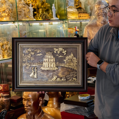 Đánh giá chất lượng tranh đồng Tháp Rùa Hồ Gươm màu trầm cổ khung nhựa composite