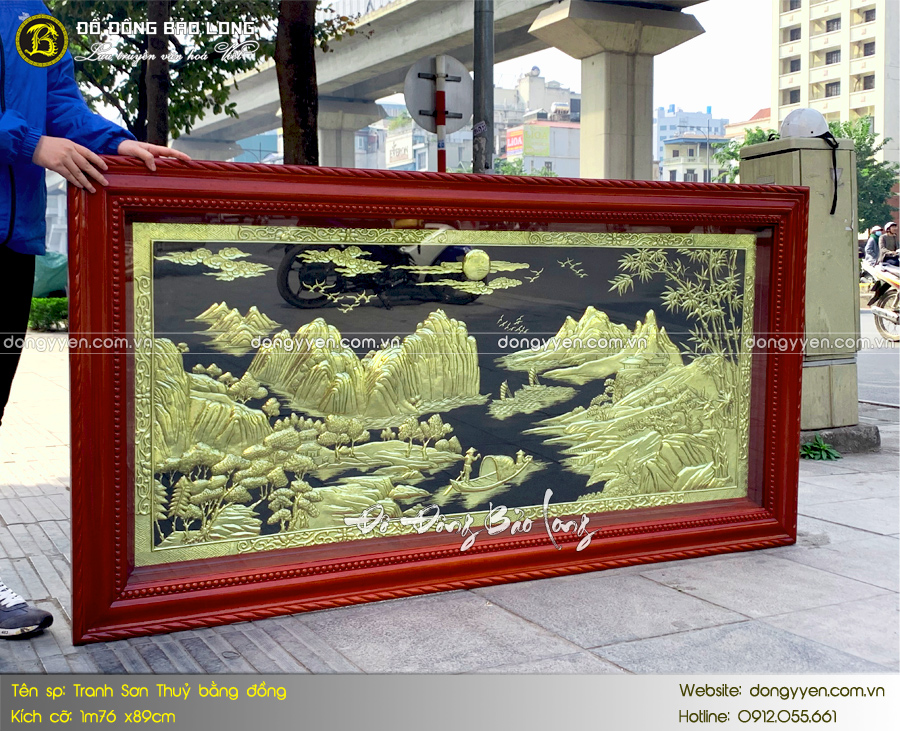 Tranh Sơn Thủy Hữu Tình 1m76 x 8cm cho khách Biên Hòa có vẻ ngoài độc đáo, ý nghĩa. Bức tranh được chạm thủ công từ tấm đồng nguyên nhập khẩu Hàn Quốc. Đây là bức tranh phong thủy tốt nhất, được rất nhiều người ưa chuộng treo trong nhà hay phòng làm việc.