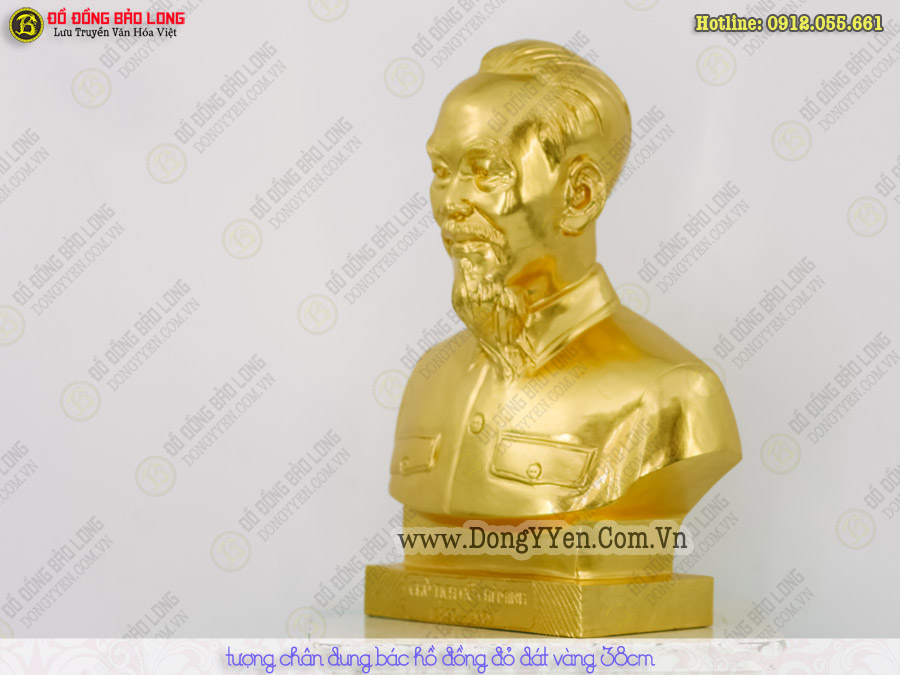 Tượng bán thân Bác Hồ cao 38cm đồng đỏ dát vàng 9999