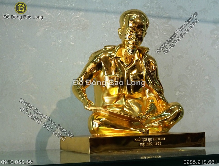 Tượng Bác Hồ cỡ nhỏ ngồi đọc báo được đúc bằng công nghệ đúc chân không cho hình hài đường nét tinh xảo, đẹp mắt, đúc nguyên khối bằng đồng vàng, toàn bộ tượng được mạ vàng 24k cao cấp. Tượng bác hồ ngồi đọc báo cỡ nhỏ mạ vàng 24k phù hợp để bày bàn làm việc hoặc bày tủ hay làm quà biếu tặng rất ý nghĩa.
