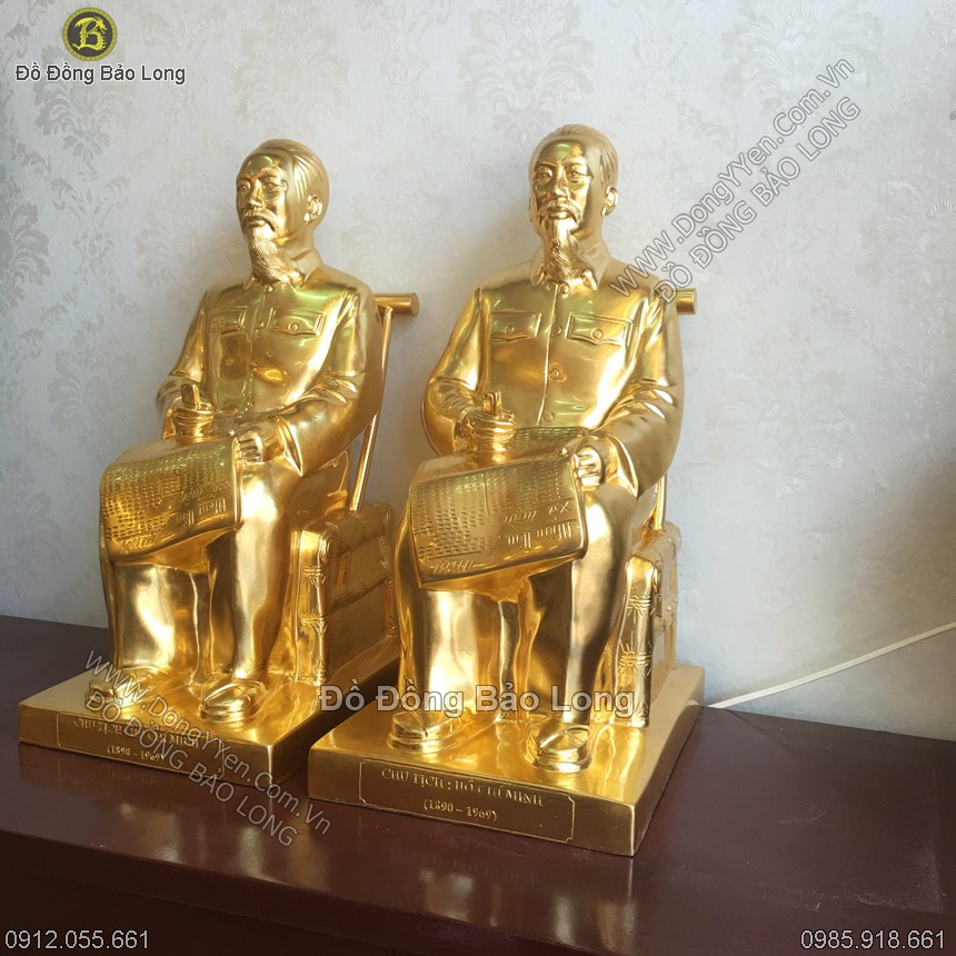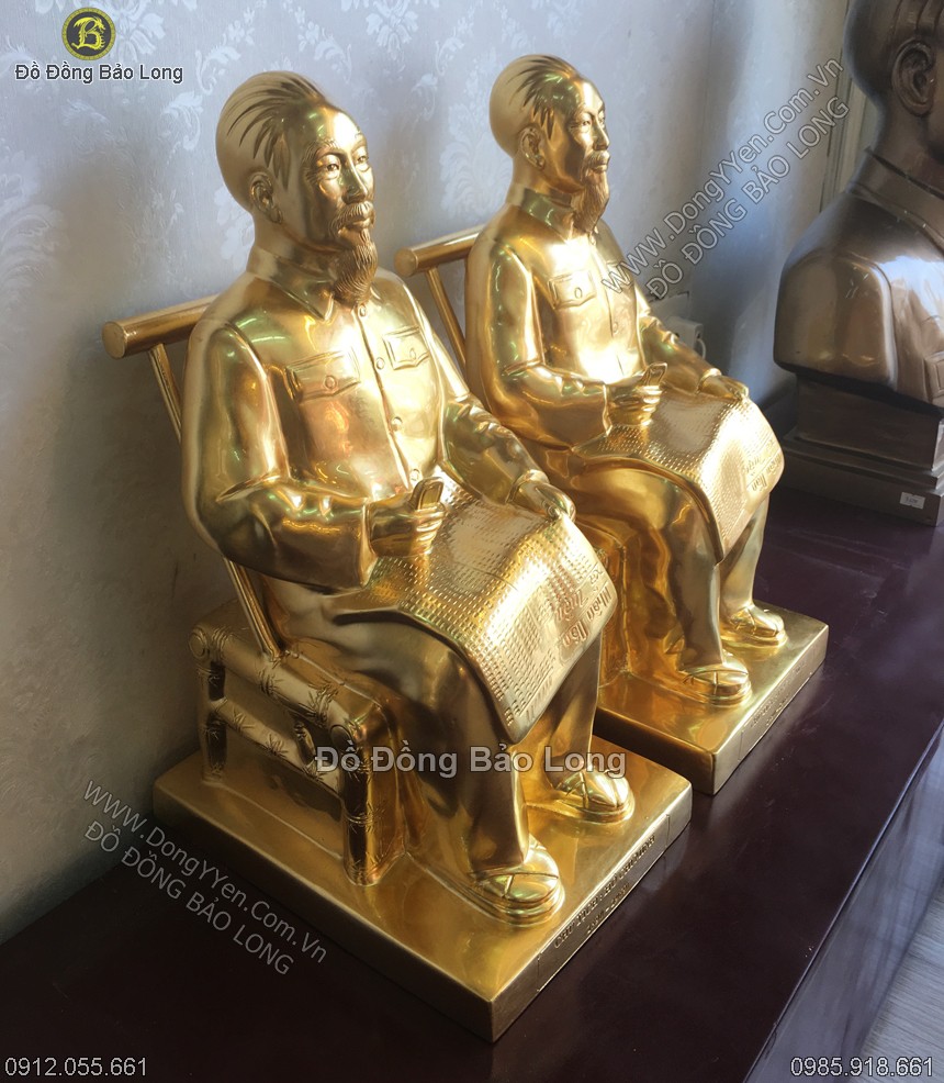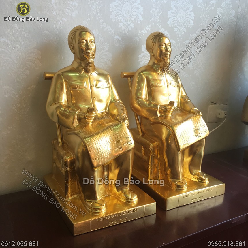 Tượng Bác Hồ Ngồi Ghế Mây Đọc Báo Thếp Vàng Cao 42cm