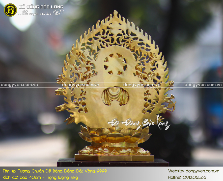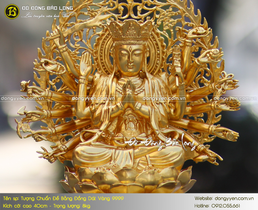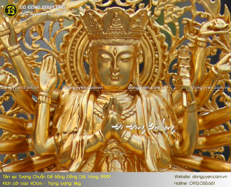 Tượng chuẩn đề cao 40cm đúc bằng đồng vàng, dát vàng toàn bộ 9999 cực đẹp. Sản phẩm có kiểu dáng độc đáo, chất lượng tốt nhất.