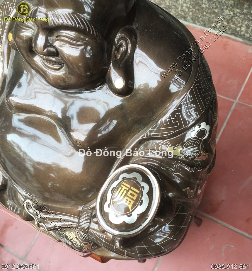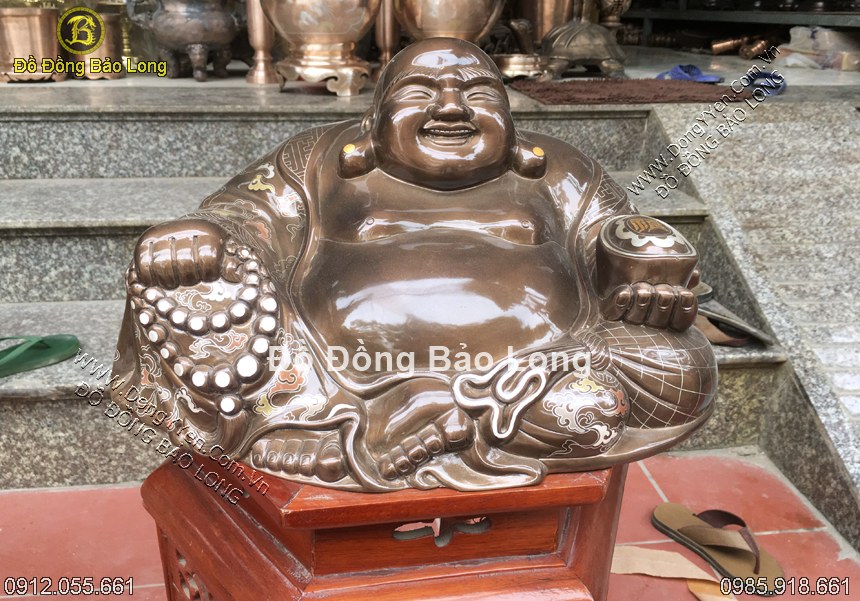 Tượng đồng phật di lặc khảm ngũ sắc cao 23cm, đúc thủ công abwngf đồng đỏ, khảm ngũ sắc 5 màu đồng đỏ, đồng xanh, đồng đen, bạc, vàng 9999 tuyệt đẹp