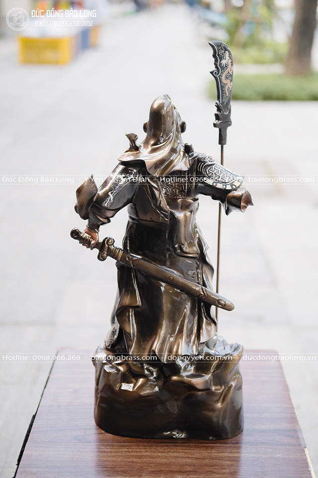 Tượng Quan Công Đứng Chống Đao Bằng Đồng Khảm Tam Khí 48cm