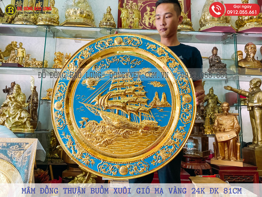 Tranh đồng thuận buồm xuôi gió khung đồng dát vàng 9999 dài 3m4 cao 1m76