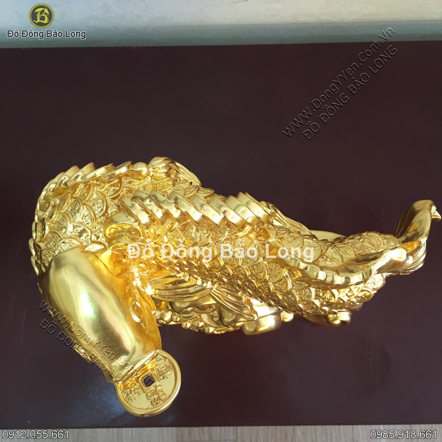 Cá Rồng Bằng Đồng Thếp Vàng 9999 23cm