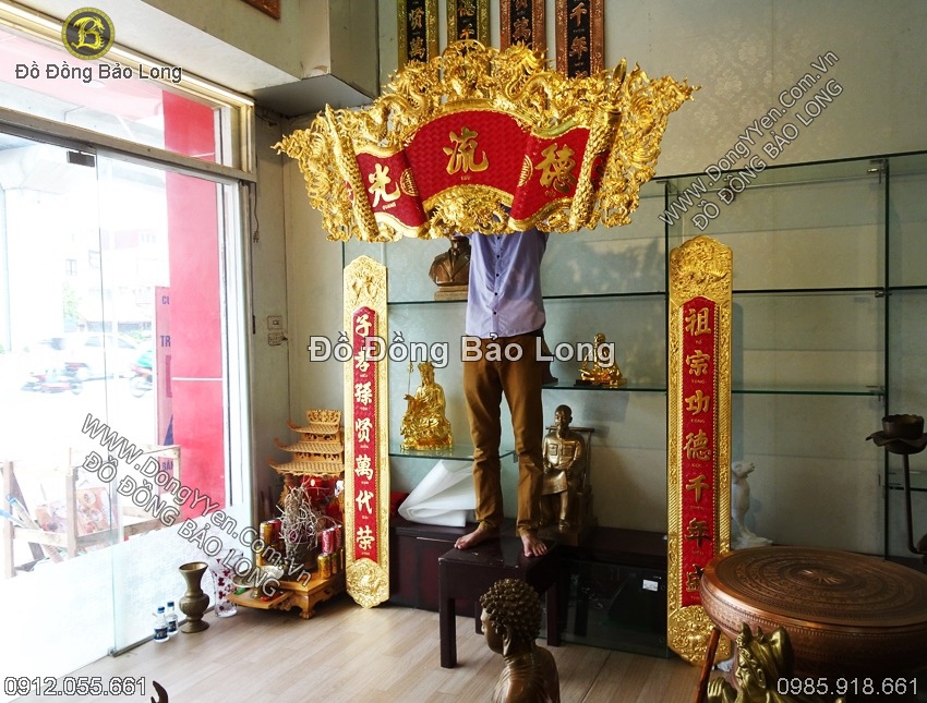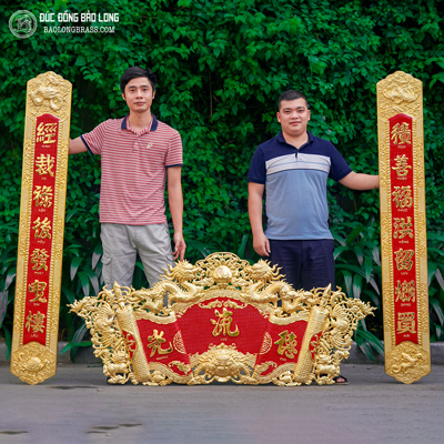 Bộ cuốn thư câu đối đồng vàng 1m76